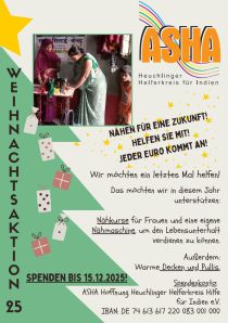 Wir konnten leider keine neuen Mitglieder für den Vorstand gewinnen. ASHA wird im neuen Jahr aufgelöst. Spenden, die dieses Jahr eingehen, werden selbstverständlich zu 100 Prozent nach Indien überwiesen. Daueraufträge bitte löschen.